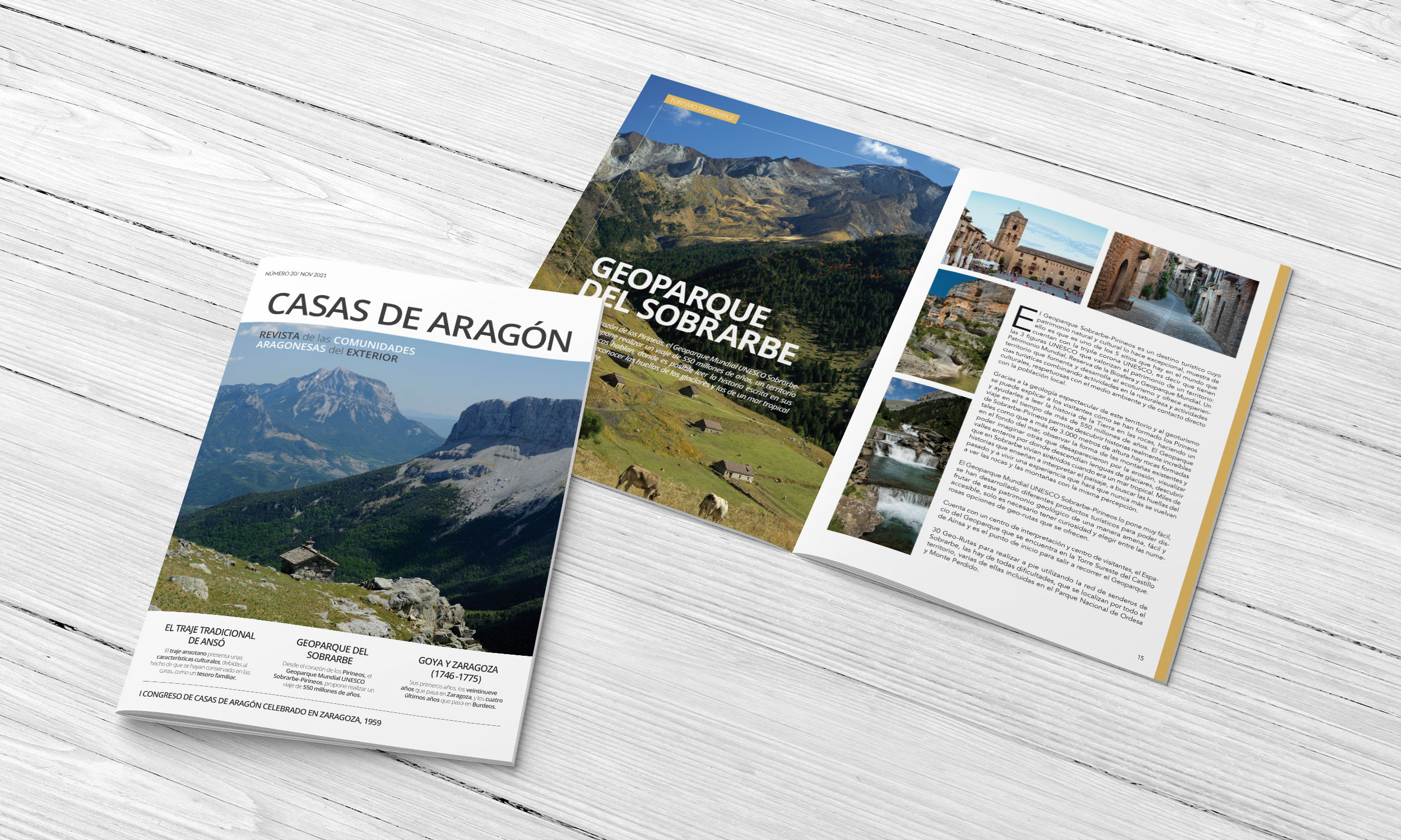Diseño de la revista Casas de Aragón, de las comunidades aragonesas del exterior.