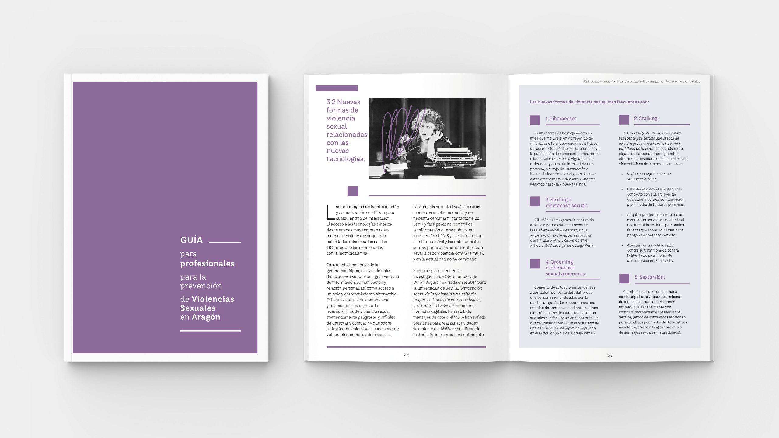 Diseño y maquetación de la Guía editada por el Instituto Aragones de la Mujer (IAM) para la prevención de violencias sexuales en Aragón.