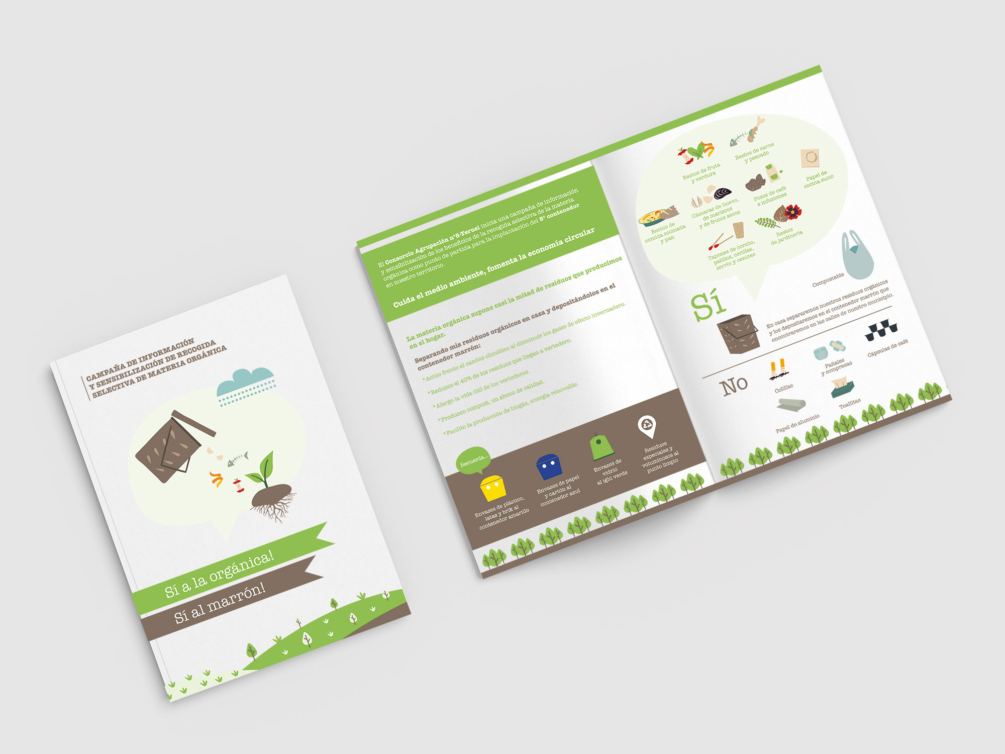 Díptico para la campaña de Educación Ambiental «Sí a la orgánica, sí al marrón».