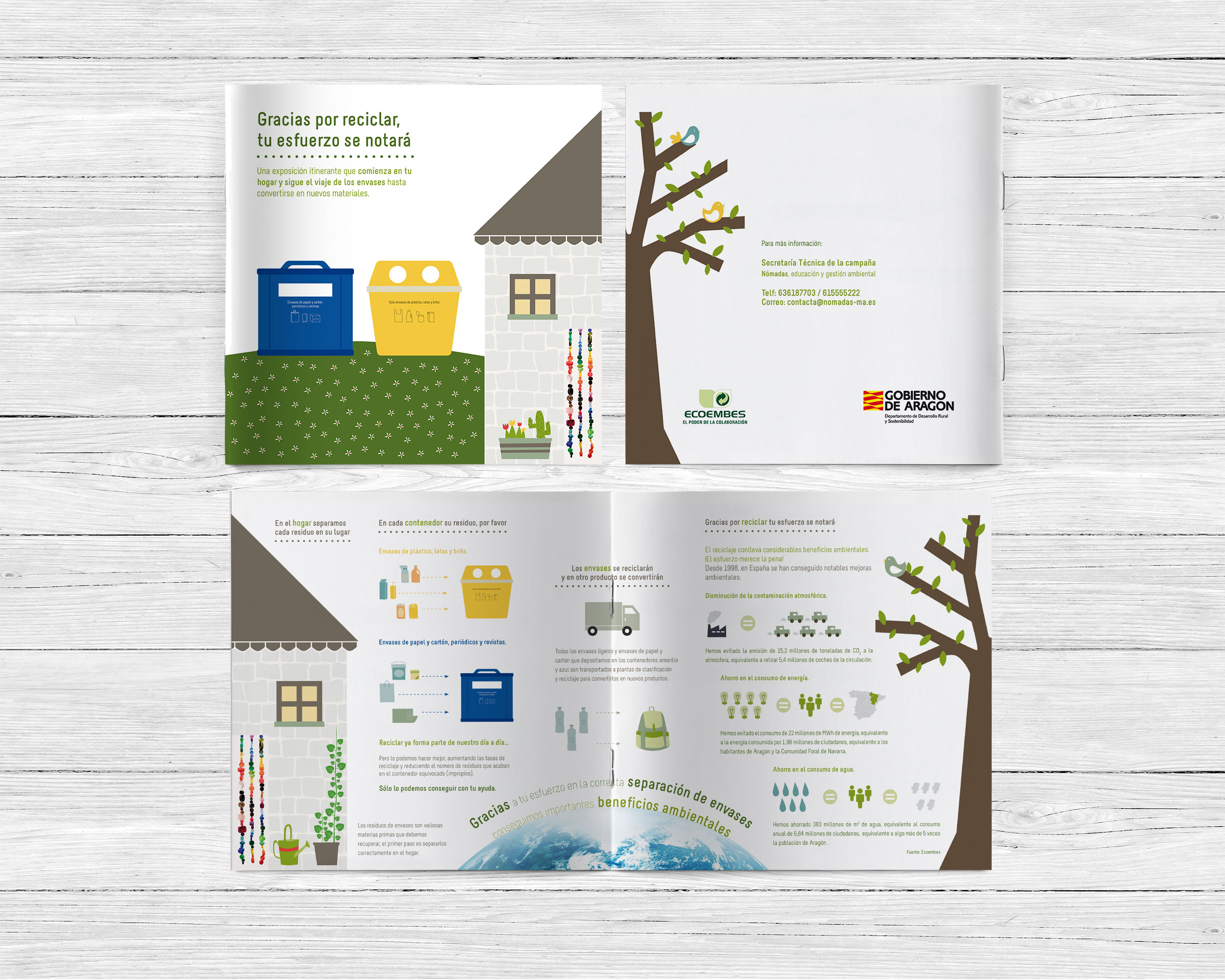 Díptico para la exposición itinerante «Gracias por reciclar, tu esfuerzo se notará».
