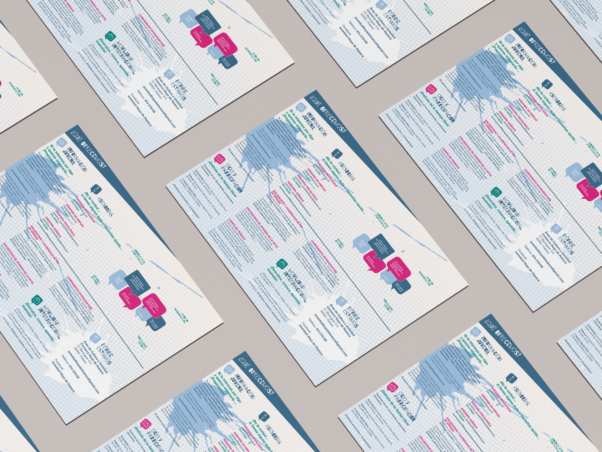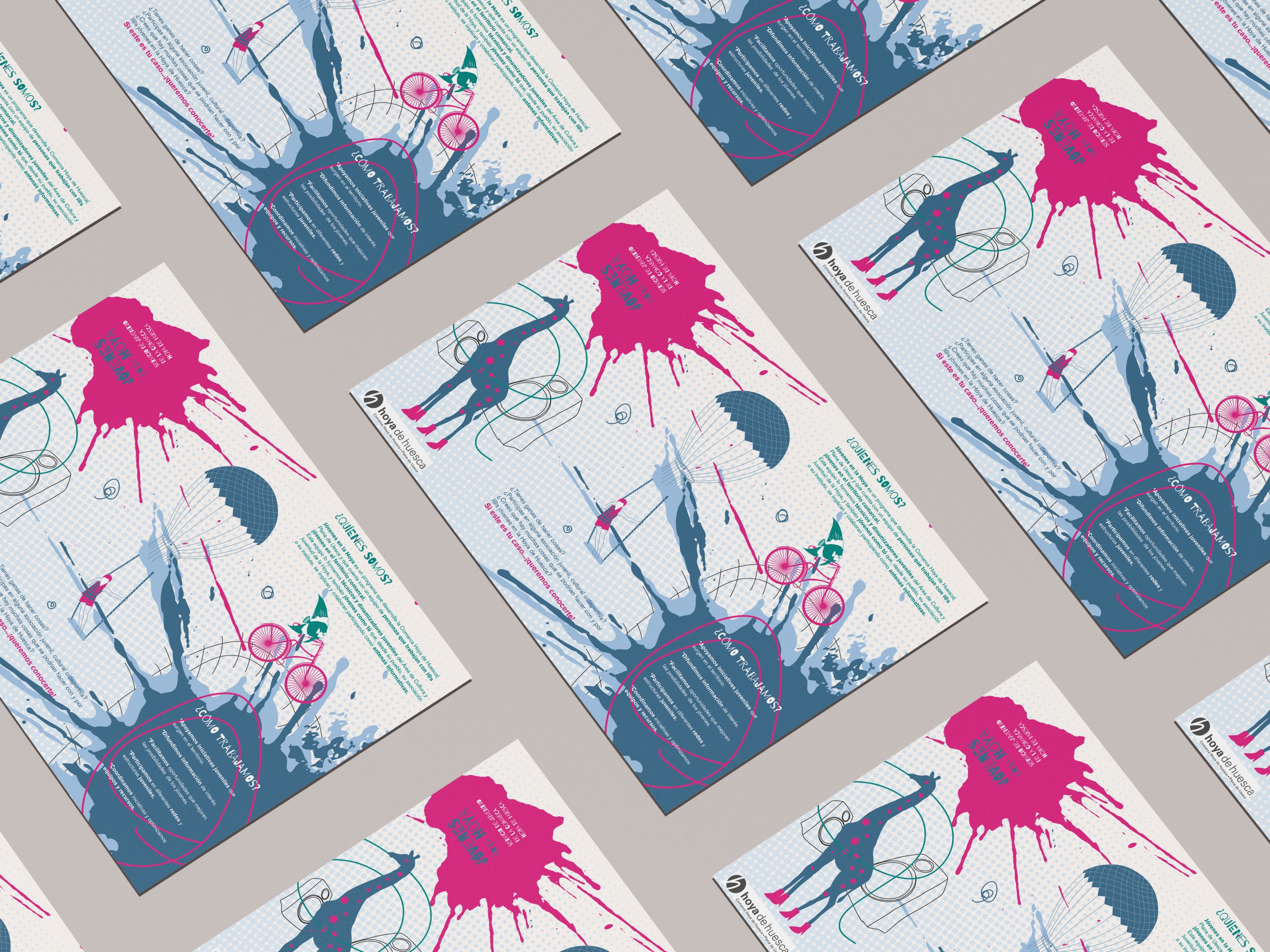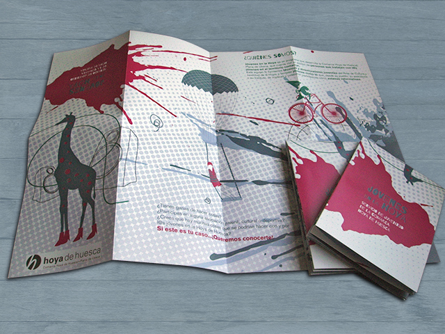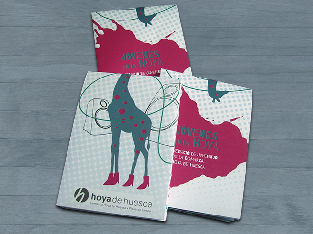 Diseño del folleto e ilustraciones con los recursos y actividades disponibles para jóvenes en la comarca de la hoya de Huesca.