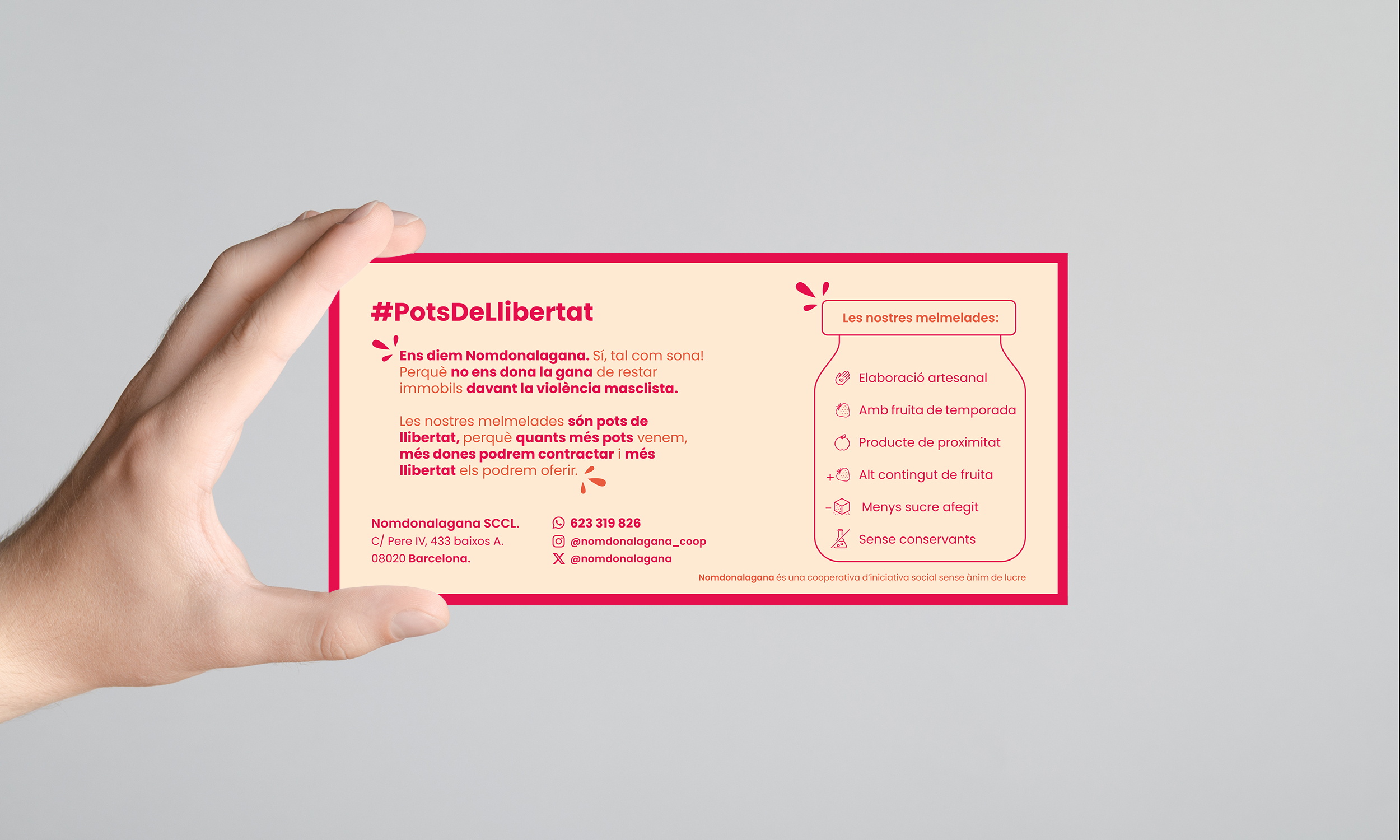 Flyers para Nomdonalagana, cooperativa de trabajo de iniciativa social, sin ánimo de lucro, dedicada a la fabricación y comercialización de mermeladas artesanas.